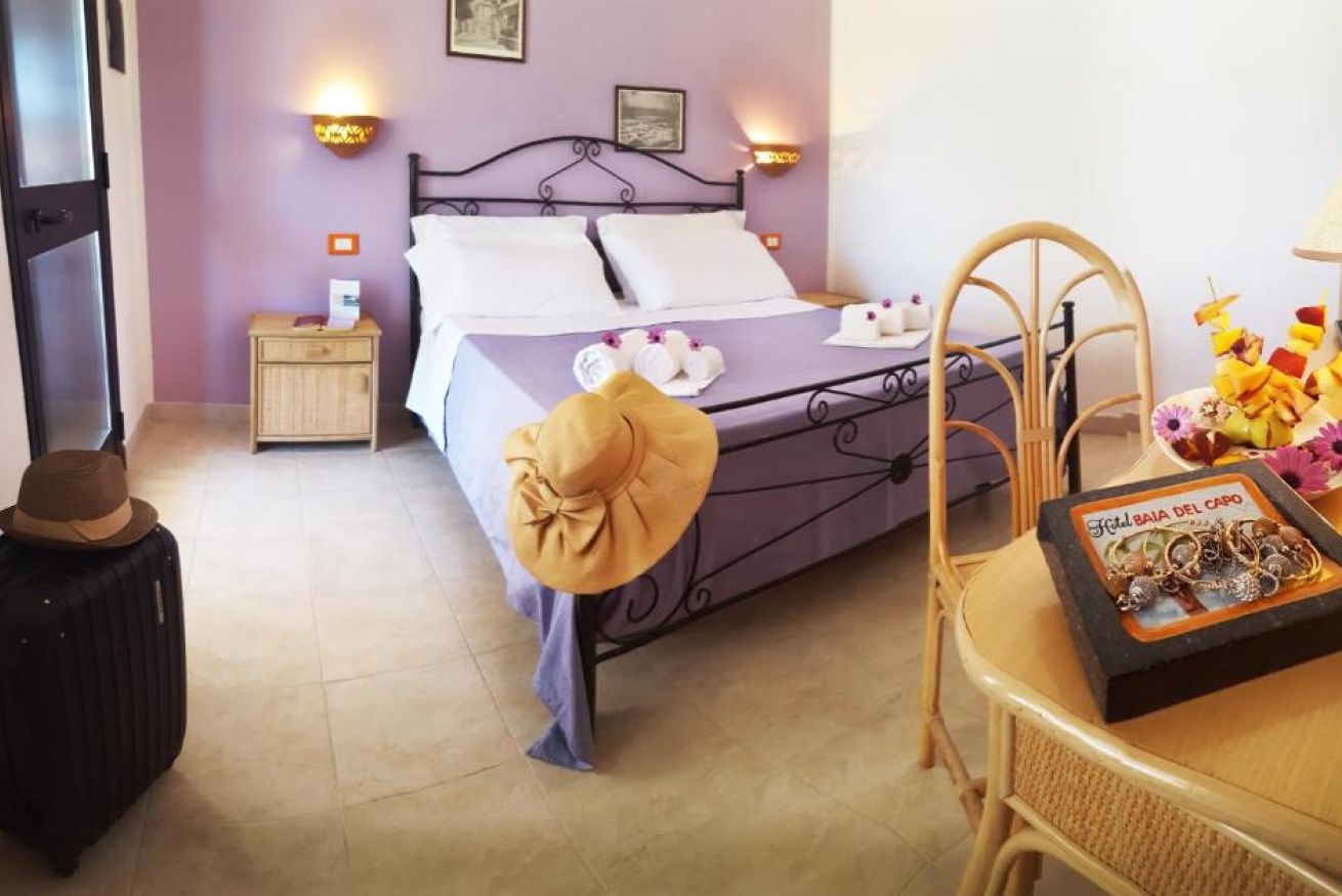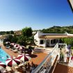 Camera Matrimoniale Vista Piscina per 2 persone immersa in una frescura di giardino, provviste di aria-condizionata autonoma, frigobar, tv, telefono, ingresso indipendente e verandina
